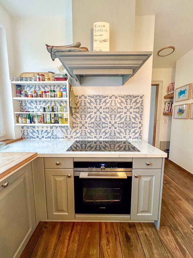 - Landhausküche von Ballerina mit Dekton-Arbeitsplatte, Villeroy & Boch Spüle und Wasseranschluss für einen Side-by-Side-Kühlschrank.