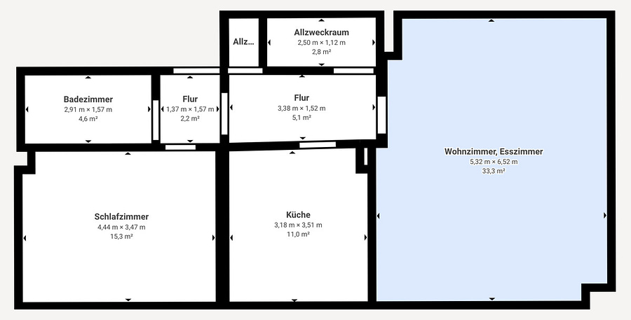 Sehr praktischer Schnitt: alle Räume erreichen Sie vom Flur aus.