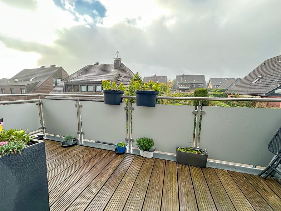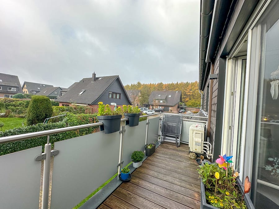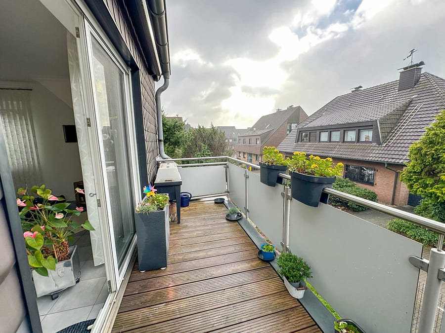 Vom Wohnzimmer gelangen Sie auf den Balkon. Hier befindet sich auch die bereits installierte Klimaanlage (Split-Klimaanlage), die sowohl kühlen als auch heizen kann.