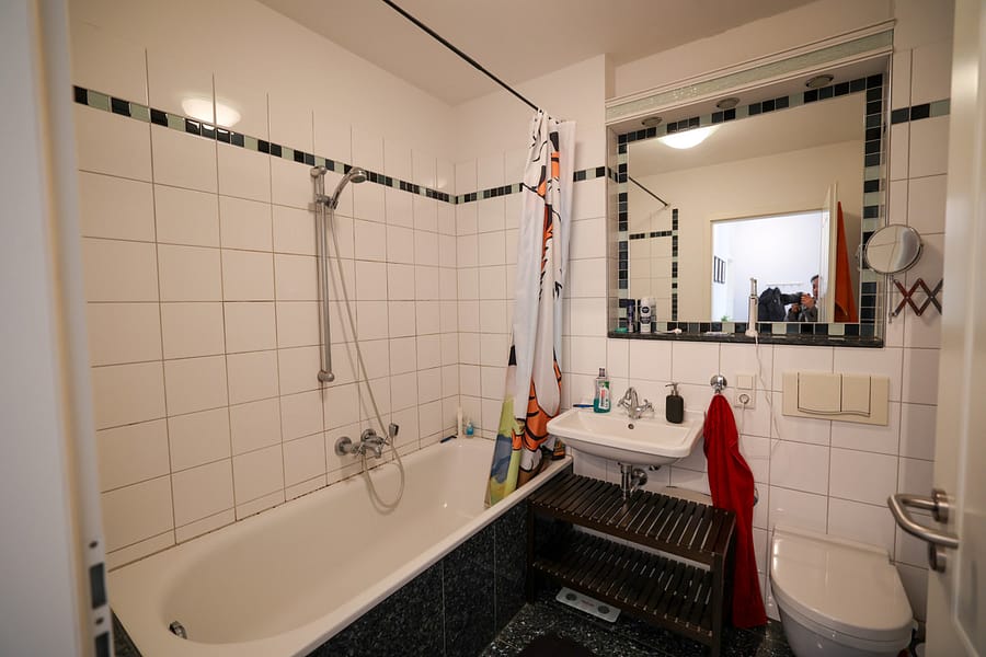 -Badezimmer mit Badewanne