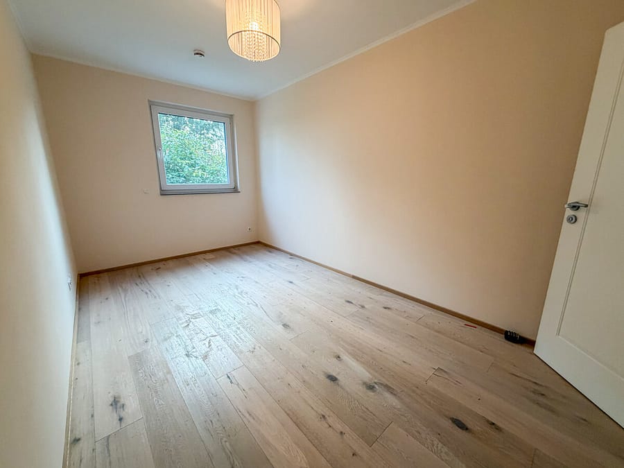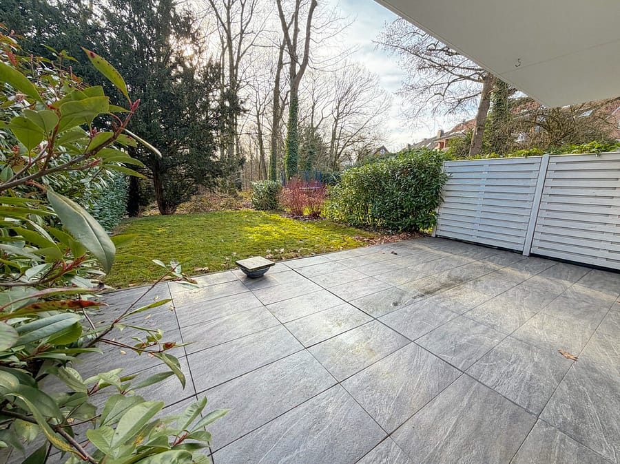 Das helle, offene Wohnzimmer mit angrenzender Einbauküche lädt zum gemeinsamen Kochen und Genießen ein. Zwei großzügige Schlafzimmer sowie ein separates Kinderzimmer schaffen Platz für jeden Lebensabschnitt. Das moderne Badezimmer mit Dusche und Badewanne sowie ein separates Gäste-WC runden das Raumkonzept perfekt ab. Über bodentiefe Fenstertüren gelangen Sie direkt auf Ihre private Terrasse mit angrenzendem Garten – Ihr persönliches grünes Refugium im Herzen von Bredeney.